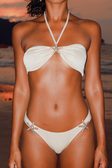 Our ‘Bandeau Bikini Top' features adjustable ties for your neck and bust, so you can customise the fit to your liking! The knot at the front accentuates your shape and lifts your breasts to create the desired cleavage. Designed to make you look and feel fantastic, whether lounging by the pool or playing on the beach. This swimwear will make you stand out in the best way possible!