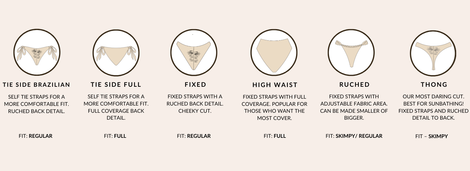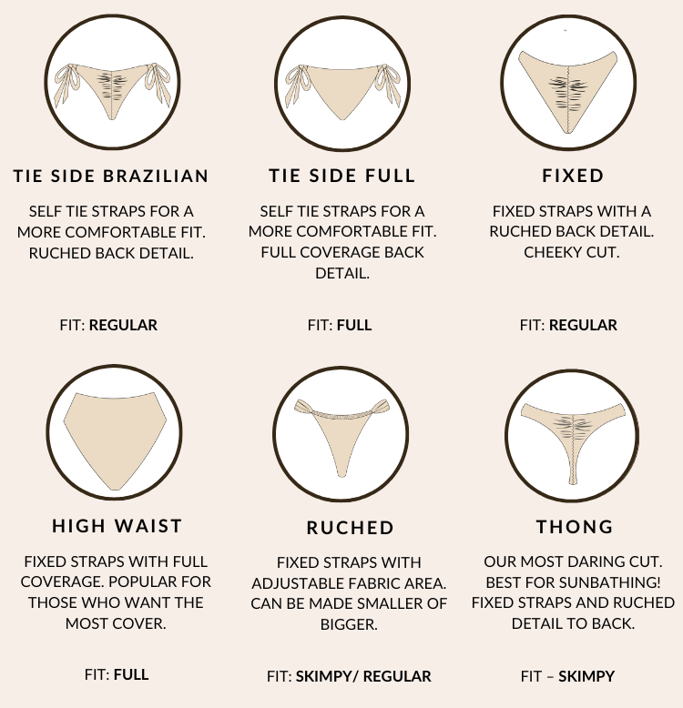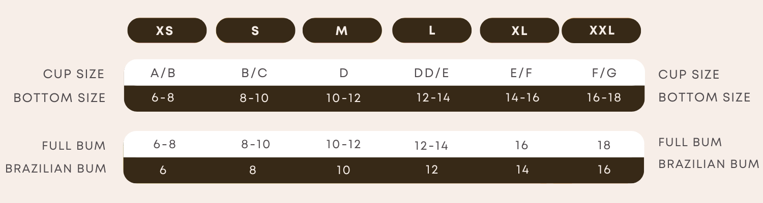 MODA MINX UNDERSTANDS THAT ALL BODIES ARE UNIQUE AND WE STRIVE TO CREATE PRODUCTS THAT ARE SUITABLE FOR EVERY SHAPE. FOR THIS REASON WE CANNOT GUARANTEE THE EXACT FIT FOR EVERYONE AND RECOMMEND YOU USE OUR SIZE GUIDE AS AN ESTIMATE OF WHAT SIZE TO PURCHASE. PLEASE TAKE INTO ACCOUNT SOME STYLES WILL VARY DUE TO DIFFERENT CUTS AND SHAPES. IF YOU ARE BETWEEN SIZING WE RECOMMEND YOU EITHER SIZE UP OR DOWN DEPENDING ON HOW MUCH COVERAGE IS PREFERRED.